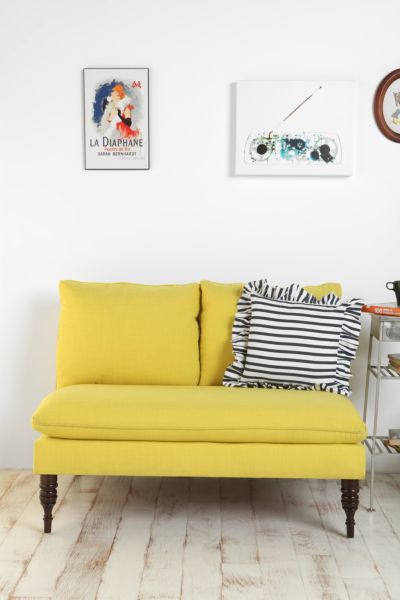 I've been seeing a lot of gorgeous Settees showing up on some of my favorite design blogs. Here are some of my favorites in a vibrant yellow, which would brighten any spot in the house! I think the one from Urban Outfitters would look great in my living room.